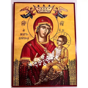 Εικόνα Ορθοδοξίας με περίγραμμα χρυσό σε ξύλο Φλαμουρίας με βάση Εικόνα Παναγία Μυροβλύτισσα Χειροποίητη Ελληνορθόδοξη , Κρεμαστή πλάκα βυζαντινής τέχνης, χριστιανική τέχνη Διάσταση 45x35 cm (17,7 x 13,8 ίντσες) INTRAEK-6294671251