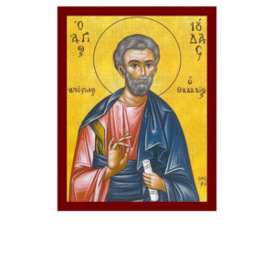 Εικόνα Ορθοδοξίας με περίγραμμα χρυσό σε ξύλο Φλαμουρίας με βάση Άγιος Ιούδας Θαδδαίος ο Απόστολος, Χειροποίητη ελληνική εικόνα του Αγίου Ιούδα Θαδδαίου, επιτοίχια πλάκα βυζαντινής τέχνης, χριστιανικό δώρο Διάσταση 45x35 cm (17,7 x 13,8 ίντσες) INTRAEK-543216723700
