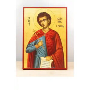 Εικόνα Ορθοδοξίας με περίγραμμα χρυσό σε ξύλο Φλαμουρίας με βάση Άγιος Ιωάννης ο Ρώσος, Ξύλινη Χειροποίητη Εικόνα με Ψηφιακή Εκτύπωση Ελληνικό Premium Βυζαντινού Στυλ Κρεμαστό Ορθόδοξο Θρησκευτικό Θέμα Χειροποίητη Ελληνορθόδοξη εικόνα του Ιησού Χριστού, Κρεμαστή πλάκα βυζαντινής τέχνης, χριστιανική τέχνη 45x35 cm (17,7 x 13,8 ίντσες) INTRAEK-342111094