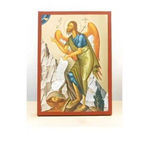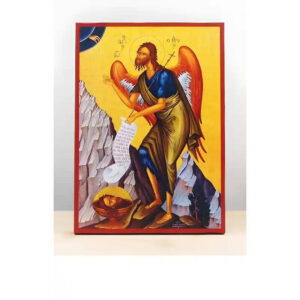 Εικόνα Ορθοδοξίας με περίγραμμα χρυσό σε ξύλο Φλαμουρίας με βάση Άγιος Ιωάννης ο Βαπτιστής Άγγελος της Ερήμου στο Βουνό, Ξύλινη Χειροποίητη Εικόνα Ελληνικού Βυζαντινού Στυλ σε τοίχο Κρεμασμένη σε ξύλινη πλάκα Χειροποίητη Ελληνορθόδοξη εικόνα του Ιησού Χριστού, Κρεμαστή πλάκα βυζαντινής τέχνης, χριστιανική τέχνη 45x35 cm (17,7 x 13,8 ίντσες) INTRAEK-342110810