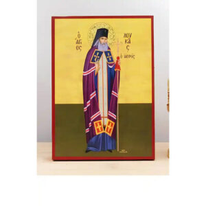 Εικόνα Ορθοδοξίας με περίγραμμα χρυσό σε ξύλο Φλαμουρίας με βάση Ολόσωμος Άγιος Λουκάς ο Ιατρός, Ξύλινη Χειροποίητη Εικόνα Ελληνικού Βυζαντινού Στυλ Κρεμαστή σε ξύλινη πλάκα Χειροποίητη Ελληνορθόδοξη εικόνα του Ιησού Χριστού, Κρεμαστή πλάκα βυζαντινής τέχνης, χριστιανική τέχνη 45x35 cm (17,7 x 13,8 ίντσες) INTRAEK-342111195