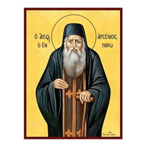 Εικόνα Ορθοδοξίας με περίγραμμα χρυσό σε ξύλο Φλαμουρίας με βάση Εικόνα Άγιος Αρσένιος ο εν Πάρω Χειροποίητη Ελληνορθόδοξη , Κρεμαστή πλάκα βυζαντινής τέχνης, χριστιανική τέχνη Διάσταση 45x35 cm (17,7 x 13,8 ίντσες) INTRAEK-6294671092