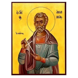 Εικόνα Ορθοδοξίας με περίγραμμα χρυσό σε ξύλο Φλαμουρίας με βάση Εικόνα Άγιος Αχιλλέας Θράκης Χειροποίητη Ελληνορθόδοξη , Κρεμαστή πλάκα βυζαντινής τέχνης, χριστιανική τέχνη Διάσταση 45x35 cm (17,7 x 13,8 ίντσες) INTRAEK-6294671091