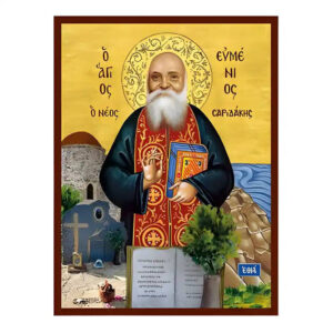 Εικόνα Ορθοδοξίας με περίγραμμα χρυσό σε ξύλο Φλαμουρίας με βάση Εικόνα Άγιος Ευμένιος Σαριδάκης Χειροποίητη Ελληνορθόδοξη , Κρεμαστή πλάκα βυζαντινής τέχνης, χριστιανική τέχνη Διάσταση 45x35 cm (17,7 x 13,8 ίντσες) INTRAEK-6294671088