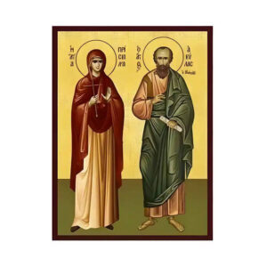 Εικόνα Ορθοδοξίας με περίγραμμα χρυσό σε ξύλο Φλαμουρίας με βάση Εικόνα Άγιος Ακύλας και Αγία Πρίσκιλλα Χειροποίητη Ελληνορθόδοξη , Κρεμαστή πλάκα βυζαντινής τέχνης, χριστιανική τέχνη Διάσταση 45x35 cm (17,7 x 13,8 ίντσες) INTRAEK-6294670467