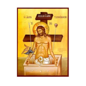 Εικόνα Ορθοδοξίας με περίγραμμα χρυσό σε ξύλο Φλαμουρίας με βάση Εικόνα Αγίων Ραφαήλ, Νικολάου και Ειρήνης, Χειροποίητη ελληνορθόδοξη εικόνα, επιτοίχια πλάκα βυζαντινής τέχνης, θρησκευτικό δώρο, χριστιανική διακόσμηση Διάσταση 45x35 cm (17,7 x 13,8 ίντσες) INTRAEK-543216723786