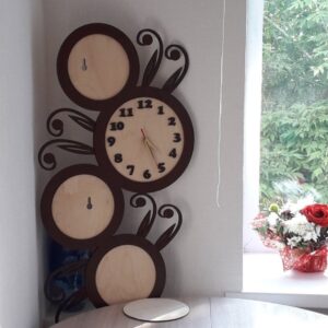 Intra απο ξύλο plywood 3mm-4mm πάχος - Κορνίζες με λουλουδάτο ρολόι Δίασταση 30x30 cm Intraeaxys-p7ymyq67