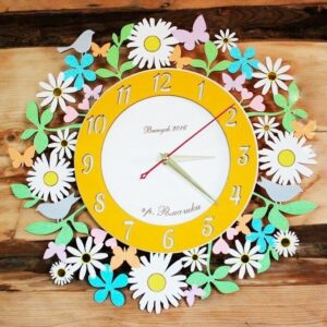 Intra απο ξύλο plywood 3mm-4mm πάχος - Ρολόι τοίχου με λουλούδια χαμομήλι Δίασταση 30x30 cm Intraeaxys-67wlwpm1