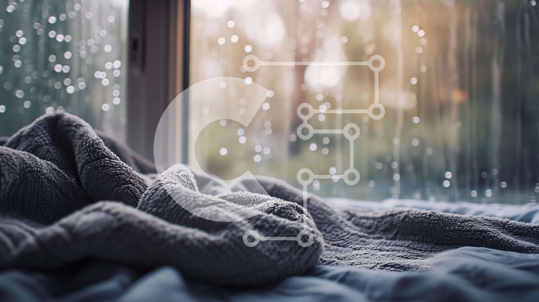 Intra Συλλεκτικό Ξύλινο Παζλ Plywood 4mm - Άνετο κρεβάτι σε μια βροχερή μέρα με κίτρινη πλεκτή κουβέρτα Σε Ξύλινο Κουτί - Διαστάσεις Puzzle: 10x10 cm – 25 κομμάτια