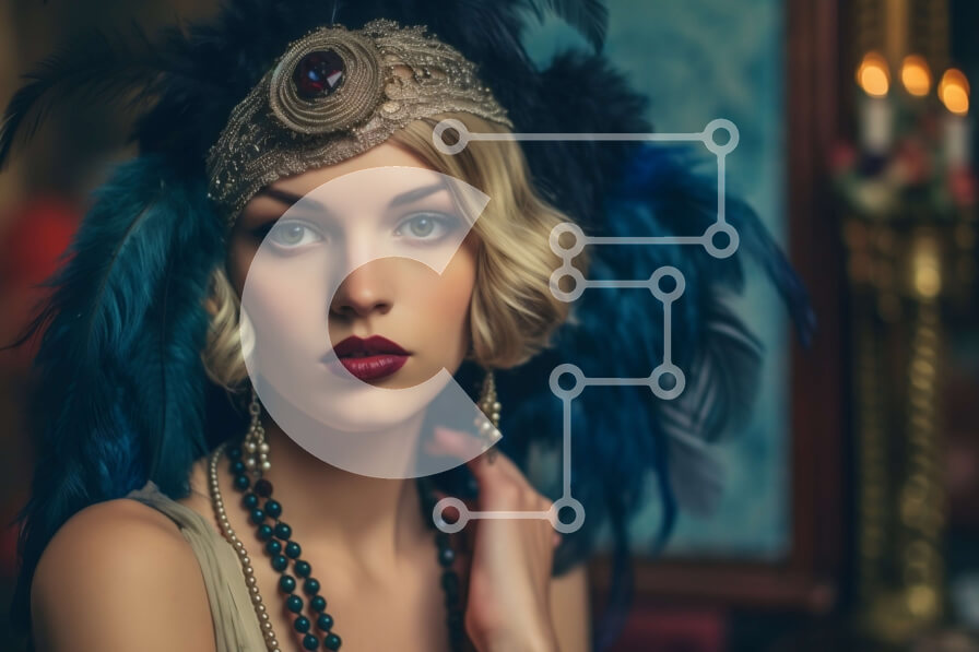 Intra Συλλεκτικό Ξύλινο Παζλ Plywood 4mm - Θλιβερή γυναίκα Flapper της δεκαετίας του 1920 με τσιγάρο και φτερωτό κεφάλι Σε Ξύλινο Κουτί - Διαστάσεις Puzzle: 10x10 cm – 25 κομμάτια