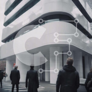 Intra Συλλεκτικό Ξύλινο Παζλ Plywood 4mm - Άνθρωποι που εισέρχονται σε ένα σύγχρονο λευκό κτίριο Σε Ξύλινο Κουτί - Διαστάσεις Puzzle: 10x10 cm – 25 κομμάτια