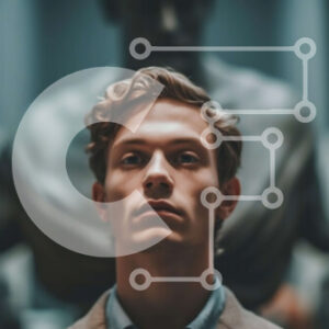 Intra Συλλεκτικό Ξύλινο Παζλ Plywood 4mm - Άνδρας που στέκεται μπροστά από το άγαλμα ενός άνδρα με κοστούμι και γραβάτα Σε Ξύλινο Κουτί - Διαστάσεις Puzzle: 10x10 cm – 25 κομμάτια