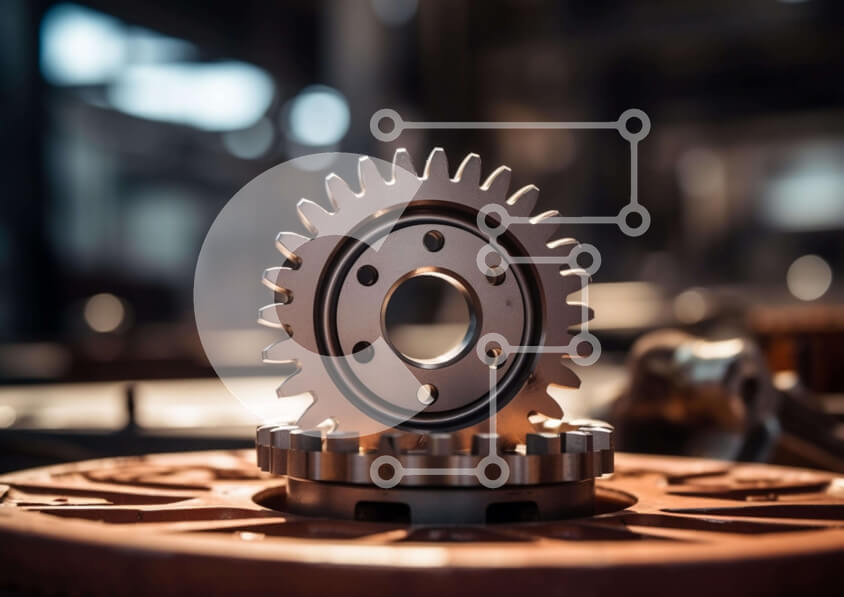 Intra Συλλεκτικό Ξύλινο Παζλ Plywood 4mm - Ζευγάρι γραναζιών σε βιομηχανικό περιβάλλον Σε Ξύλινο Κουτί - Διαστάσεις Puzzle: 10x10 cm – 25 κομμάτια