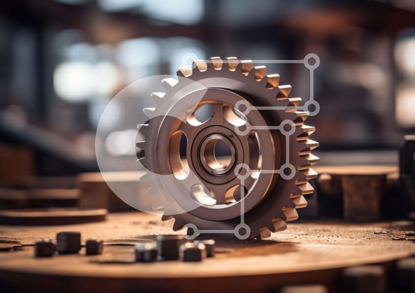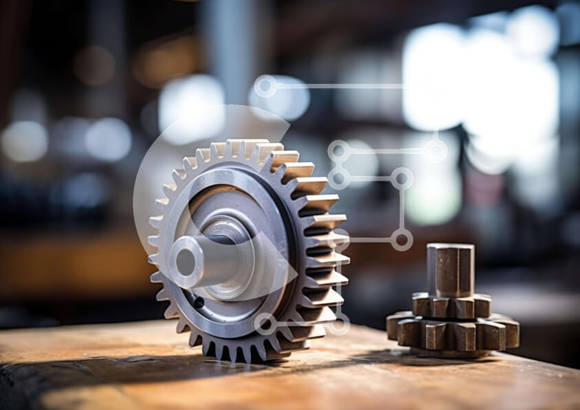 Intra Συλλεκτικό Ξύλινο Παζλ Plywood 4mm - Βιομηχανικά μεταλλικά γρανάζια σε ξύλινο τραπέζι Σε Ξύλινο Κουτί - Διαστάσεις Puzzle: 10x10 cm – 25 κομμάτια