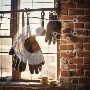 Intra Συλλεκτικό Ξύλινο Παζλ Plywood 4mm - Βιομηχανικά δερμάτινα γάντια που κρέμονται στο γάντζο Σε Ξύλινο Κουτί - Διαστάσεις Puzzle: 10x10 cm – 25 κομμάτια