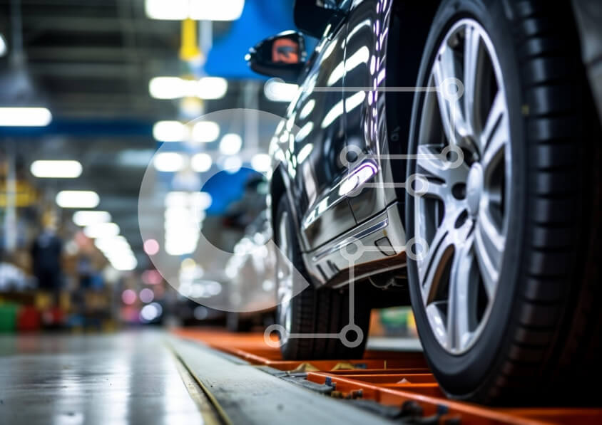 Intra Συλλεκτικό Ξύλινο Παζλ Plywood 4mm - Γραμμή συναρμολόγησης αυτοκινήτων με αυτοκίνητα σε ιμάντα μεταφοράς Σε Ξύλινο Κουτί - Διαστάσεις Puzzle: 10x10 cm – 25 κομμάτια