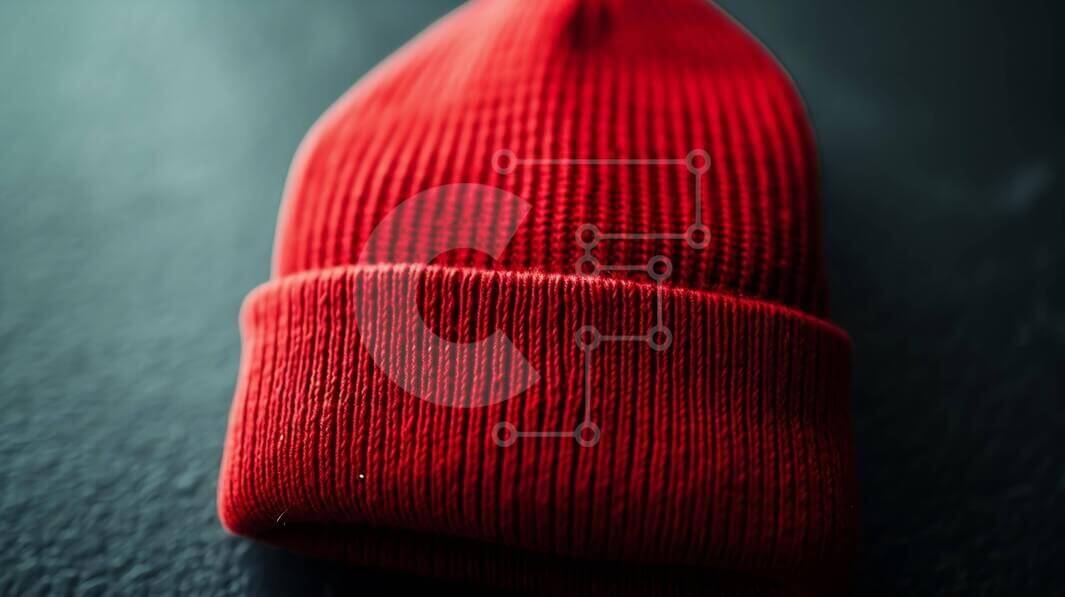 Intra Συλλεκτικό Ξύλινο Παζλ Plywood 4mm - Κοντινό πλάνο ενός κόκκινου πλεκτού καπέλου Beanie Σε Ξύλινο Κουτί - Διαστάσεις Puzzle: 10x10 cm – 25 κομμάτια