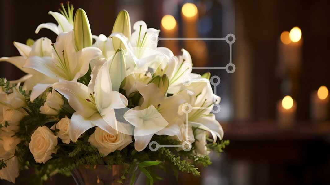 Intra Συλλεκτικό Ξύλινο Παζλ Plywood 4mm - Κομψό Μπουκέτο Λευκό Κρίνο και Τριαντάφυλλο με Κεριά Σε Ξύλινο Κουτί - Διαστάσεις Puzzle: 10x10 cm – 25 κομμάτια