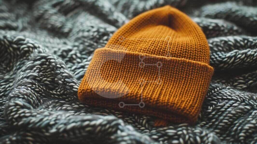 Intra Συλλεκτικό Ξύλινο Παζλ Plywood 4mm - Πορτοκαλί πλεκτό Beanie σε γκρι κουβέρτα Σε Ξύλινο Κουτί - Διαστάσεις Puzzle: 10x10 cm – 25 κομμάτια
