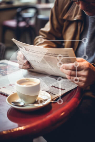 Intra Συλλεκτικό Ξύλινο Παζλ Plywood 4mm - Άτομο που απολαμβάνει τον καφέ και διαβάζει εφημερίδα στο Cafe Σε Ξύλινο Κουτί - Διαστάσεις Puzzle: 10x10 cm – 25 κομμάτια