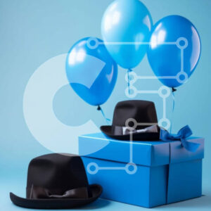 Intra Συλλεκτικό Ξύλινο Παζλ Plywood 4mm - Εορταστικά καπέλα και μπαλόνια σε μπλε φόντο Σε Ξύλινο Κουτί - Διαστάσεις Puzzle: 10x10 cm – 25 κομμάτια