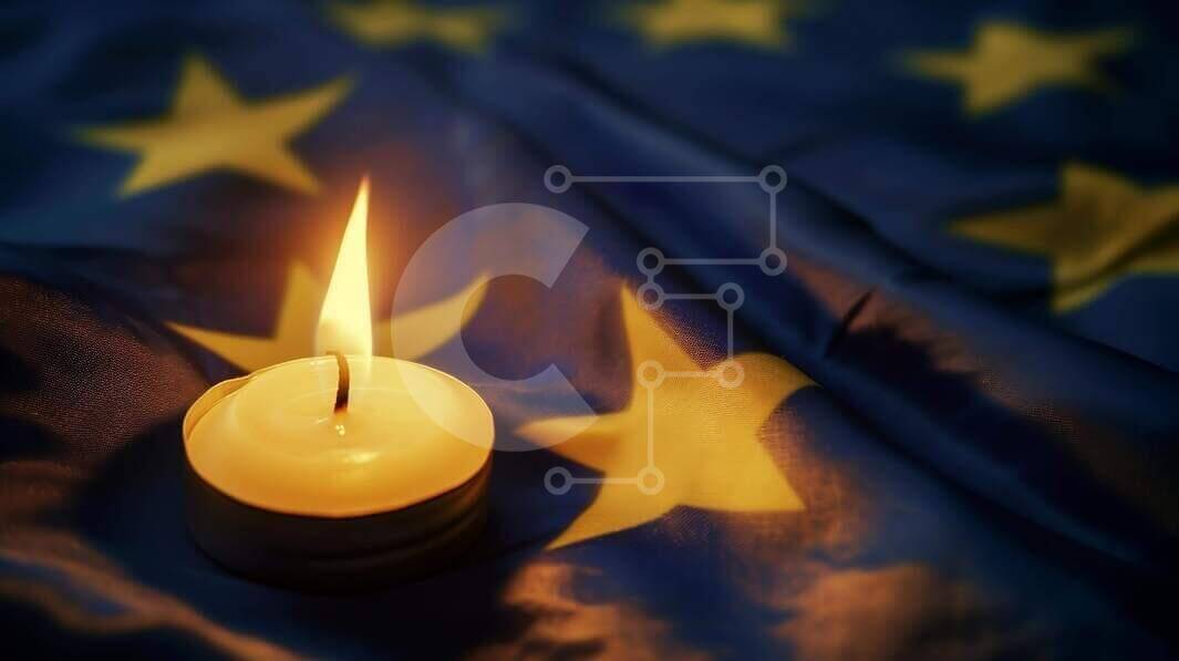 Intra Συλλεκτικό Ξύλινο Παζλ Plywood 4mm - Κερί σε φόντο σημαία της Ευρωπαϊκής Ένωσης Σε Ξύλινο Κουτί - Διαστάσεις Puzzle: 10x10 cm – 25 κομμάτια