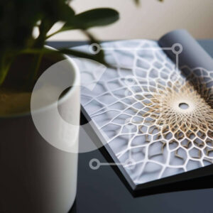Intra Συλλεκτικό Ξύλινο Παζλ Plywood 4mm - Ανοιχτό βιβλίο με γεωμετρικό σχέδιο δίπλα σε φυτό σε γλάστρα Σε Ξύλινο Κουτί - Διαστάσεις Puzzle: 10x10 cm – 25 κομμάτια