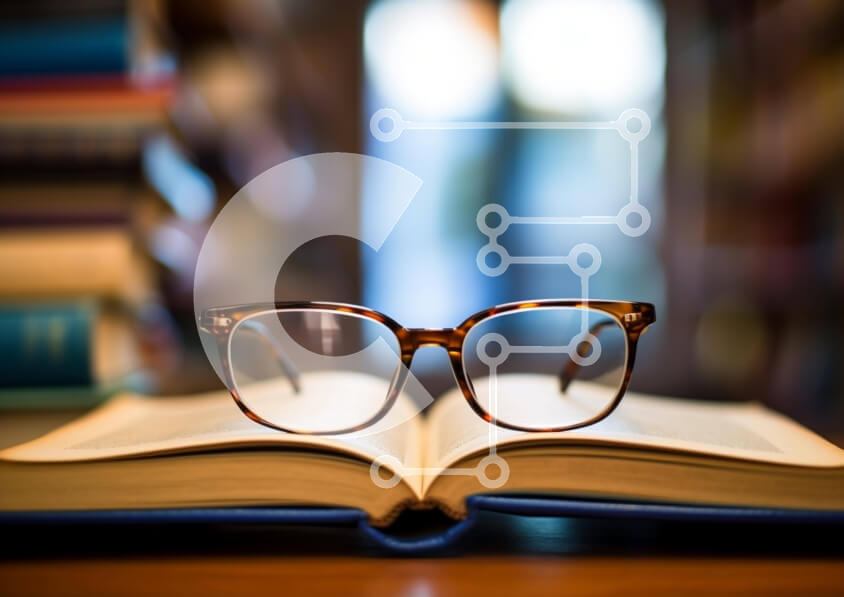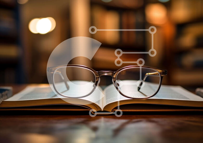 Intra Συλλεκτικό Ξύλινο Παζλ Plywood 4mm - Ανοιχτό βιβλίο με γυαλιά και βιβλία στο φόντο Σε Ξύλινο Κουτί - Διαστάσεις Puzzle: 10x10 cm – 25 κομμάτια