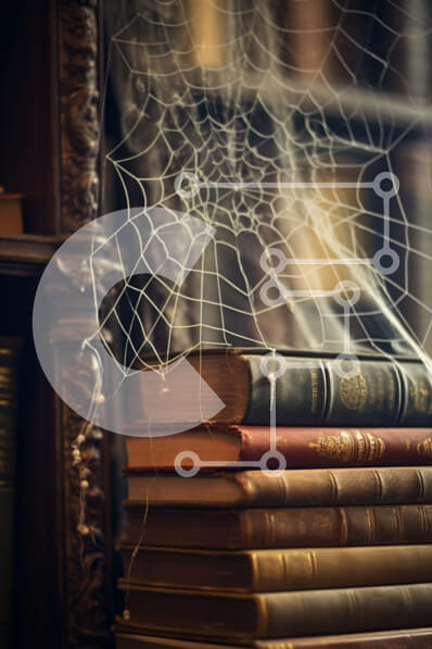 Intra Συλλεκτικό Ξύλινο Παζλ Plywood 4mm - Απόκοσμη στοίβα βιβλίων με ιστούς αράχνης Σε Ξύλινο Κουτί - Διαστάσεις Puzzle: 10x10 cm – 25 κομμάτια