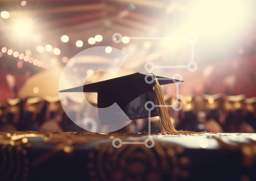 Intra Συλλεκτικό Ξύλινο Παζλ Plywood 4mm - Αποφοίτηση Cap on Books with City Skyline Σε Ξύλινο Κουτί - Διαστάσεις Puzzle: 10x10 cm – 25 κομμάτια