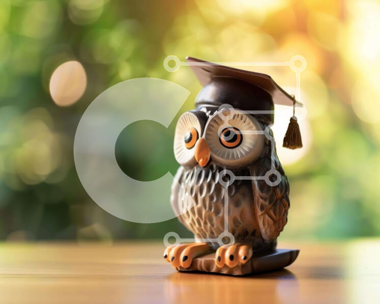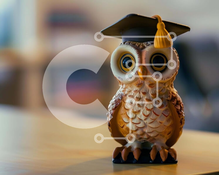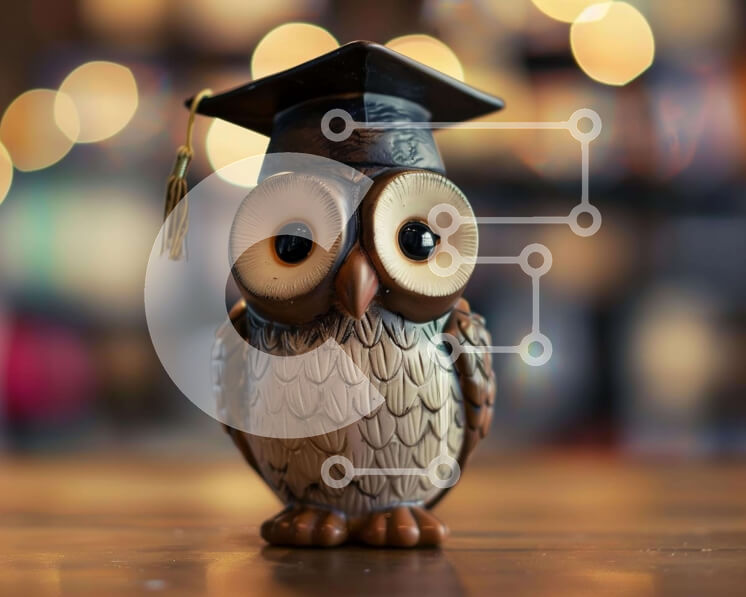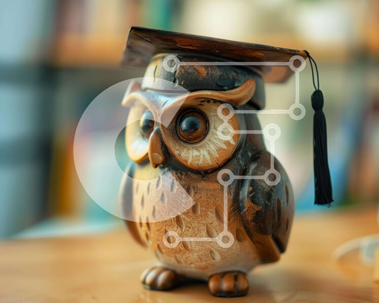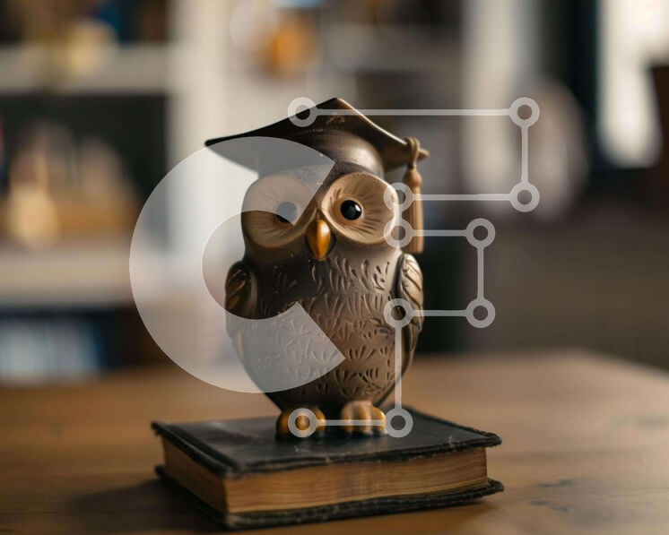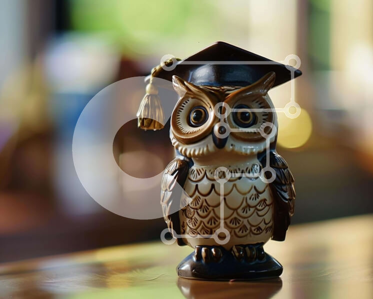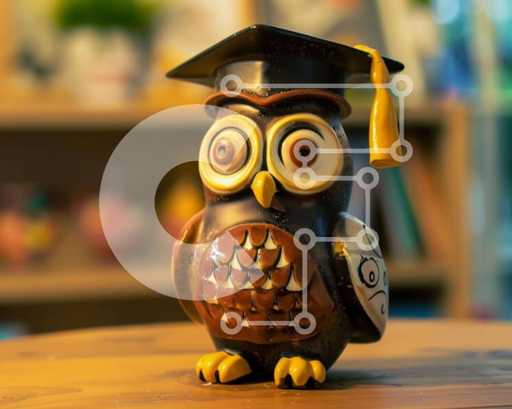 Intra Συλλεκτικό Ξύλινο Παζλ Plywood 4mm - Ειδώλιο κουκουβάγιας με καπάκι αποφοίτησης σε ξύλινο τραπέζι με κινητό τηλέφωνο Σε Ξύλινο Κουτί - Διαστάσεις Puzzle: 10x10 cm – 25 κομμάτια