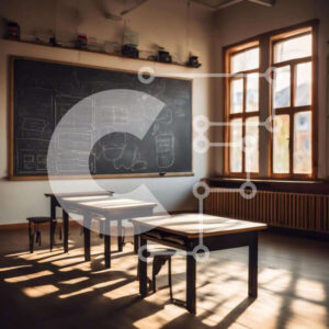 Intra Συλλεκτικό Ξύλινο Παζλ Plywood 4mm - Άδεια τάξη με ξύλινα θρανία και ηλιόλουστο παράθυρο Σε Ξύλινο Κουτί - Διαστάσεις Puzzle: 10x10 cm – 25 κομμάτια