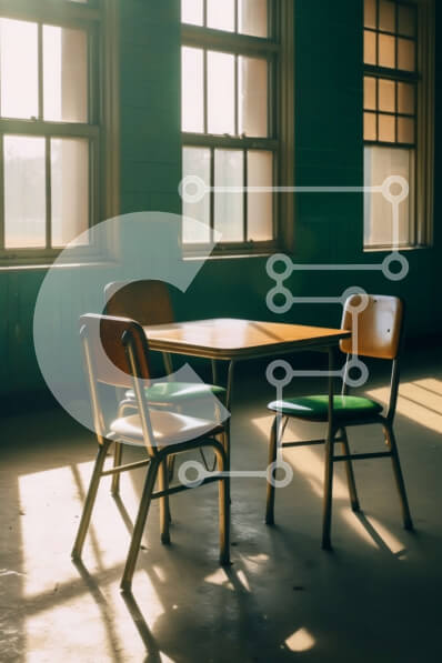 Intra Συλλεκτικό Ξύλινο Παζλ Plywood 4mm - Άδεια τάξη με ξύλινο τραπέζι και πράσινες καρέκλες Σε Ξύλινο Κουτί - Διαστάσεις Puzzle: 10x10 cm – 25 κομμάτια
