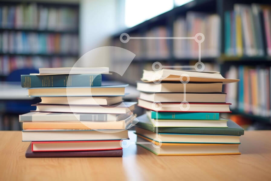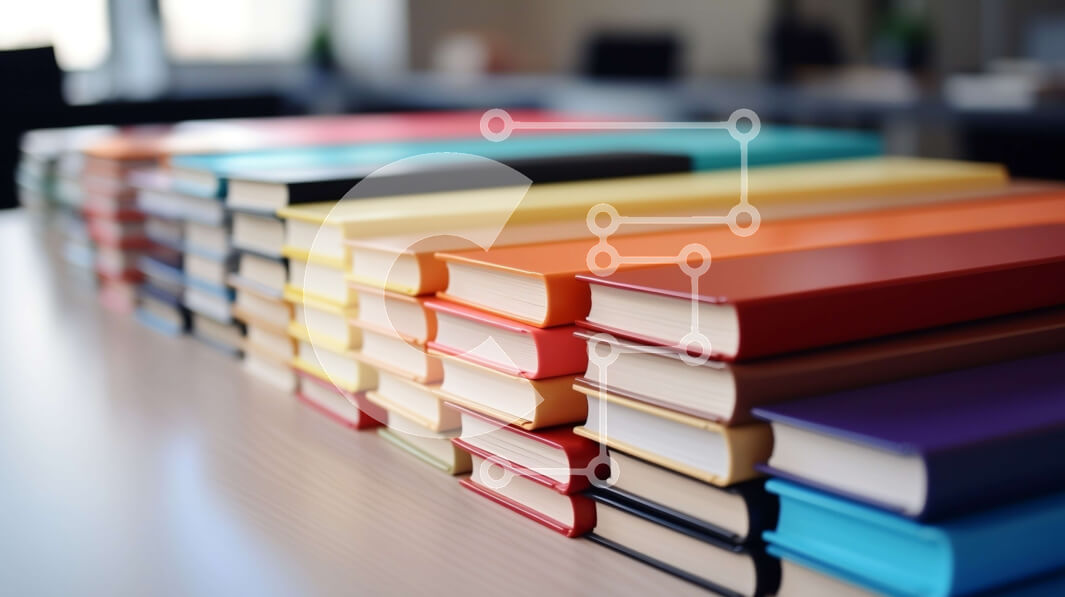 Intra Συλλεκτικό Ξύλινο Παζλ Plywood 4mm - Στοίβα από βιβλία στο τραπέζι με χαρτιά στο παρασκήνιο Σε Ξύλινο Κουτί - Διαστάσεις Puzzle: 10x10 cm – 25 κομμάτια