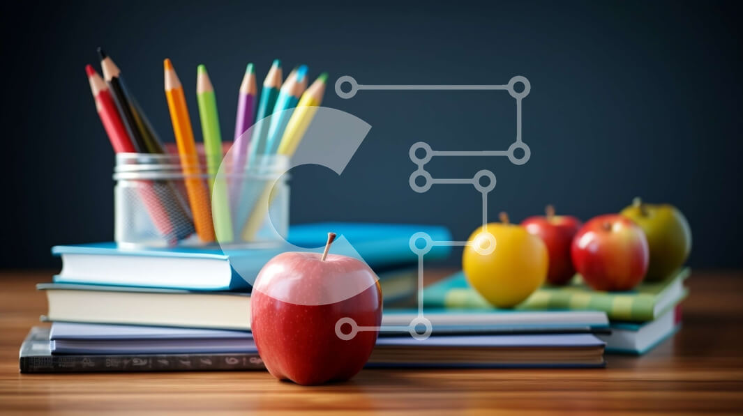 Intra Συλλεκτικό Ξύλινο Παζλ Plywood 4mm - Στοίβα από βιβλία σε ξύλινο τραπέζι με κόκκινο μήλο Σε Ξύλινο Κουτί - Διαστάσεις Puzzle: 10x10 cm – 25 κομμάτια