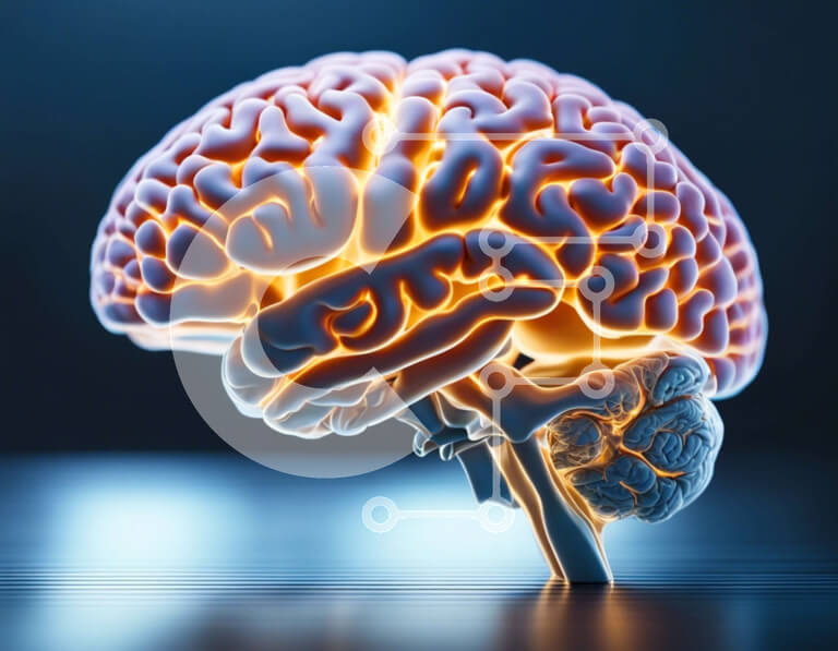 Intra Συλλεκτικό Ξύλινο Παζλ Plywood 4mm - Τρισδιάστατο μοντέλο ανθρώπινου εγκεφάλου που φωτίζεται από το πορτοκαλί φως Σε Ξύλινο Κουτί - Διαστάσεις Puzzle: 10x10 cm – 25 κομμάτια