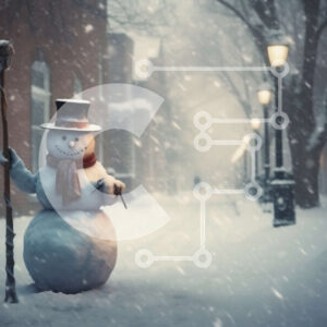 Intra Συλλεκτικό Ξύλινο Παζλ Plywood 4mm - Winter Wonderland: Snowman in a Snowy Street Σε Ξύλινο Κουτί - Διαστάσεις Puzzle: 10x10 cm – 25 κομμάτια