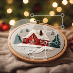 Intra Συλλεκτικό Ξύλινο Παζλ Plywood 4mm - Χιονισμένο Σπίτι σε Κεντητική Διακόσμηση Τσέρκι Σε Ξύλινο Κουτί - Διαστάσεις Puzzle: 10x10 cm – 25 κομμάτια