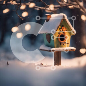 Intra Συλλεκτικό Ξύλινο Παζλ Plywood 4mm - Χιονισμένο σπίτι πουλιών σε ένα χειμερινό τοπίο Σε Ξύλινο Κουτί - Διαστάσεις Puzzle: 10x10 cm – 25 κομμάτια
