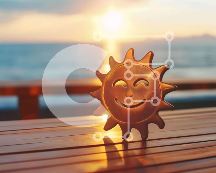 Intra Συλλεκτικό Ξύλινο Παζλ Plywood 4mm - Ειδώλιο ήλιου σε εξωτερικό τραπέζι με φόντο ωκεανό Σε Ξύλινο Κουτί - Διαστάσεις Puzzle: 10x10 cm – 25 κομμάτια