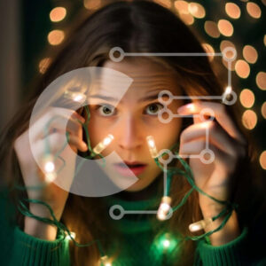 Intra Συλλεκτικό Ξύλινο Παζλ Plywood 4mm - Έκπληκτη νεαρή γυναίκα με τα αναμμένα χριστουγεννιάτικα φώτα Σε Ξύλινο Κουτί - Διαστάσεις Puzzle: 10x10 cm – 25 κομμάτια
