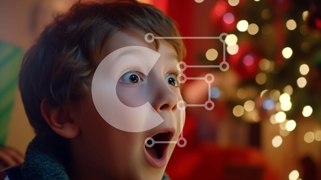 Intra Συλλεκτικό Ξύλινο Παζλ Plywood 4mm - Ενθουσιασμένο αγόρι που εκπλήσσεται από τα φώτα του χριστουγεννιάτικου δέντρου Σε Ξύλινο Κουτί - Διαστάσεις Puzzle: 10x10 cm – 25 κομμάτια