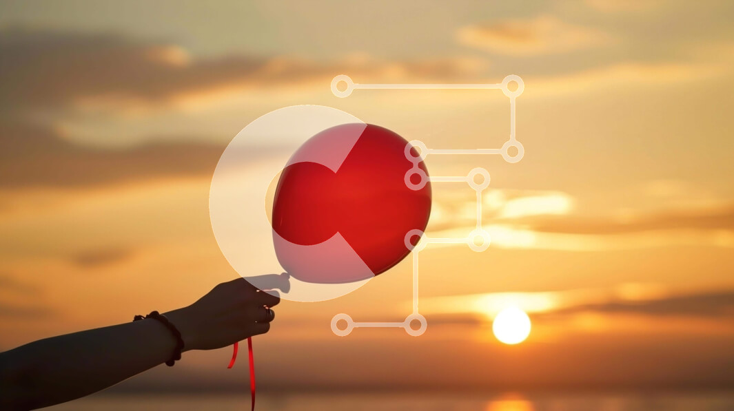 Intra Συλλεκτικό Ξύλινο Παζλ Plywood 4mm - Εορταστικό κόκκινο μπαλόνι στο ηλιοβασίλεμα Σε Ξύλινο Κουτί - Διαστάσεις Puzzle: 10x10 cm – 25 κομμάτια