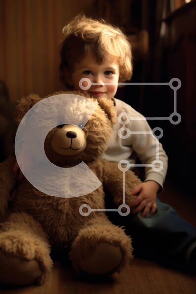 Intra Συλλεκτικό Ξύλινο Παζλ Plywood 4mm - Ζεστή και άνετη εικόνα αγοριού που αγκαλιάζει λούτρινο αρκουδάκι Σε Ξύλινο Κουτί - Διαστάσεις Puzzle: 10x10 cm – 25 κομμάτια