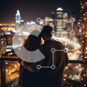 Intra Συλλεκτικό Ξύλινο Παζλ Plywood 4mm - Ζευγάρι αγκαλιάζεται και απολαμβάνει τη θέα στην πόλη τη νύχτα Σε Ξύλινο Κουτί - Διαστάσεις Puzzle: 10x10 cm – 25 κομμάτια