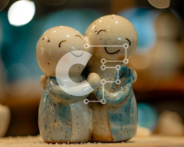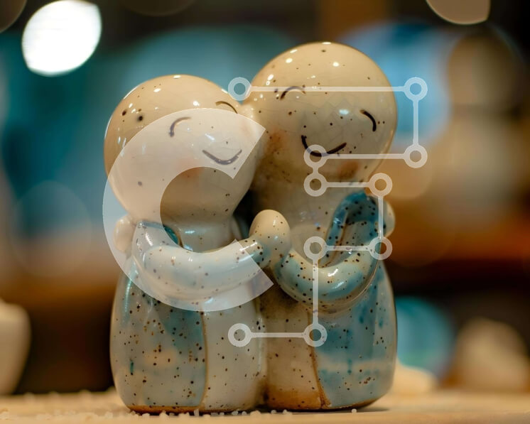 Intra Συλλεκτικό Ξύλινο Παζλ Plywood 4mm - Κεραμικό ειδώλιο δύο ατόμων που αγκαλιάζονται Σε Ξύλινο Κουτί - Διαστάσεις Puzzle: 10x10 cm – 25 κομμάτια