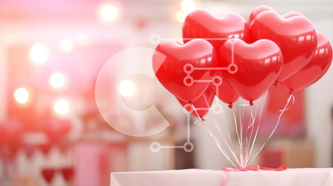 Intra Συλλεκτικό Ξύλινο Παζλ Plywood 4mm - Κόκκινα και ροζ μπαλόνια σε σχήμα καρδιάς σε ξύλινο τραπέζι Σε Ξύλινο Κουτί - Διαστάσεις Puzzle: 10x10 cm – 25 κομμάτια
