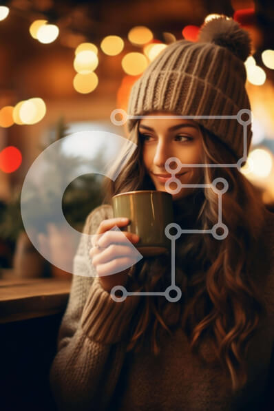 Intra Συλλεκτικό Ξύλινο Παζλ Plywood 4mm - Νεαρή γυναίκα που απολαμβάνει τις εορταστικές διακοσμήσεις και τον καφέ Σε Ξύλινο Κουτί - Διαστάσεις Puzzle: 10x10 cm – 25 κομμάτια