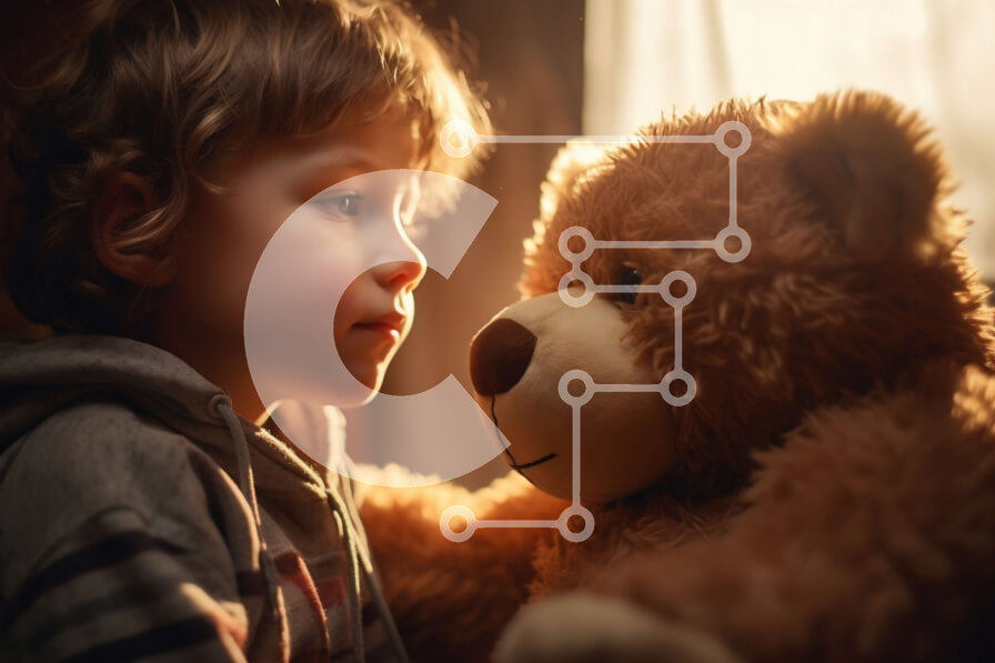 Intra Συλλεκτικό Ξύλινο Παζλ Plywood 4mm - Νεαρό αγόρι που κρατά το αρκουδάκι Σε Ξύλινο Κουτί - Διαστάσεις Puzzle: 10x10 cm – 25 κομμάτια