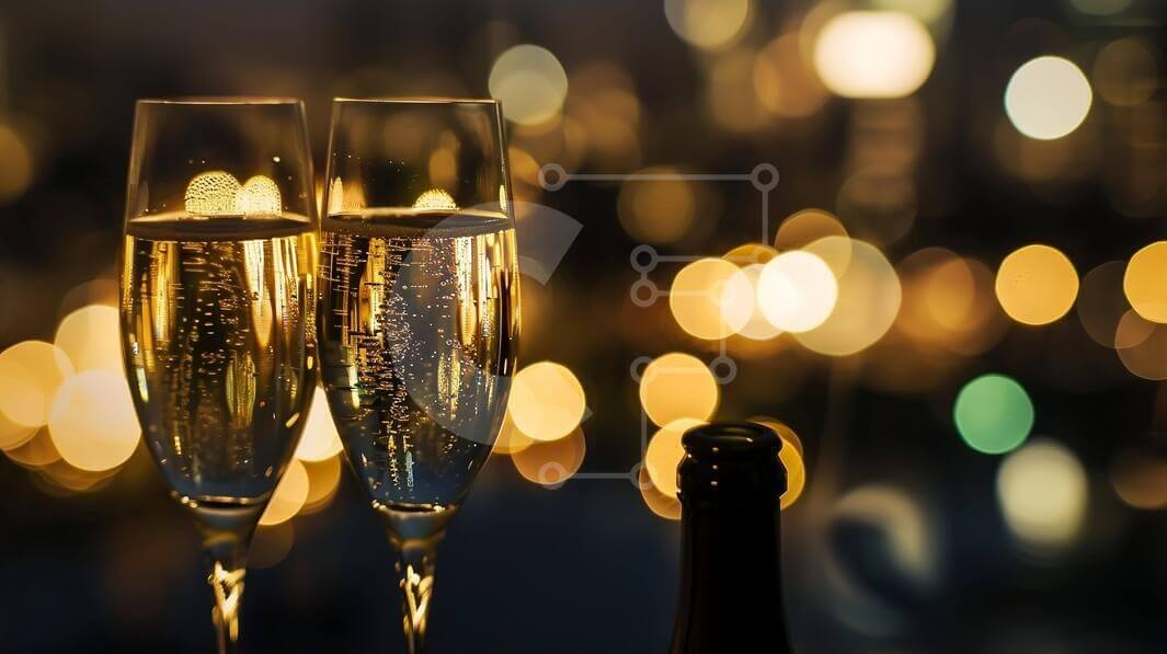Intra Συλλεκτικό Ξύλινο Παζλ Plywood 4mm - Γιορτή με φλάουτα σαμπάνιας και χρυσά φώτα Σε Ξύλινο Κουτί - Διαστάσεις Puzzle: 10x10 cm – 25 κομμάτια
